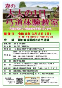 R7 spring oneday-school poster | 越谷市弓道場越谷市弓道場